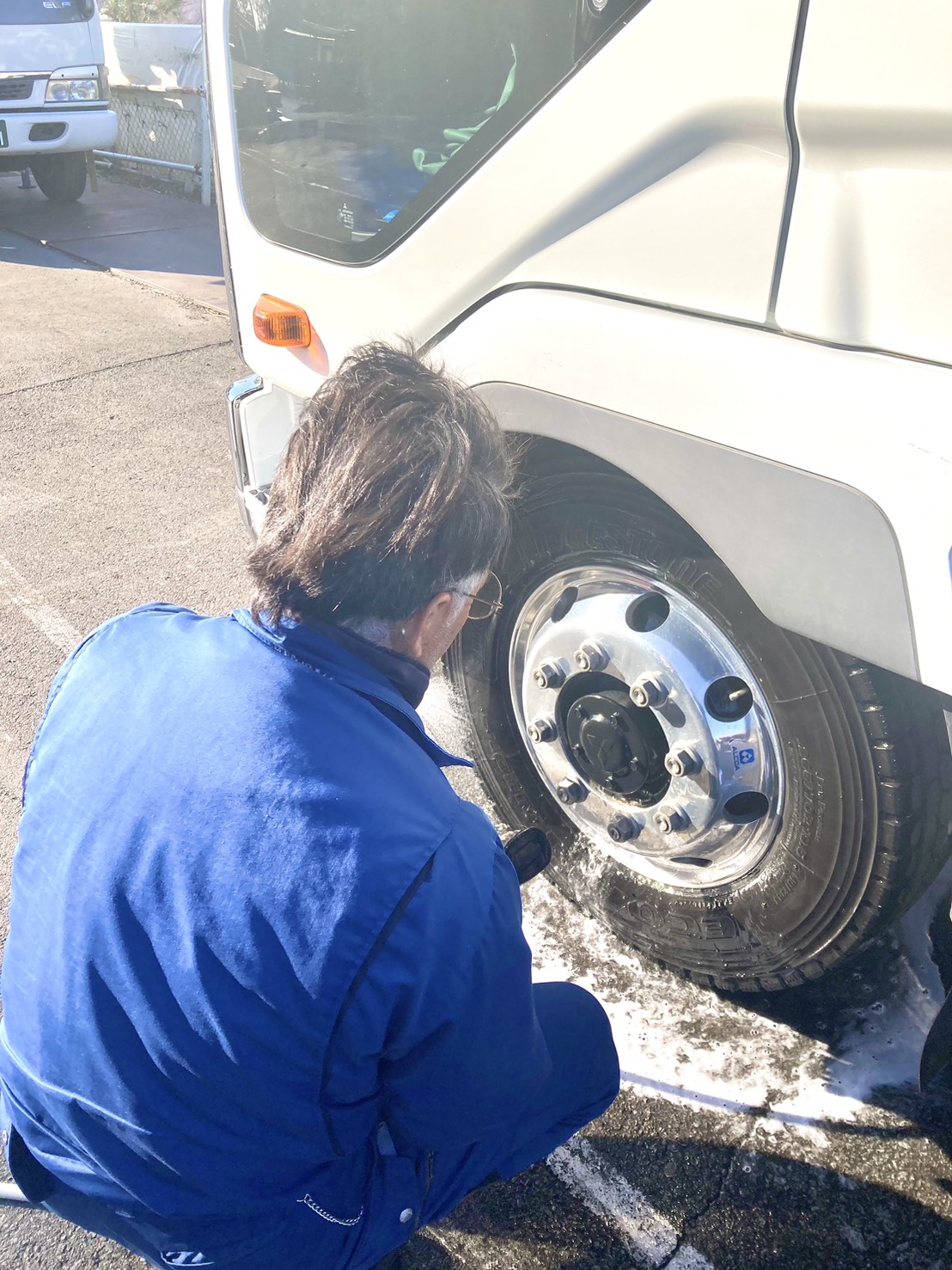 ドライバーさんが乗務終了後に洗車をしていました☆強風の中ご苦労様です!!